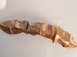 My grandparents came from Greece. When they came to this country they owned a restaurant called Hermes. cooking and growing food was important. My grandparents lived with us and we had this huge huge garden in our backyard, with pear, quince, peach, and cherry trees. They grew beans, tomatoes, lettuce, just about everything we needed. This little pea pod is folded, forged, and enameled, as if it were just picked from the garden.